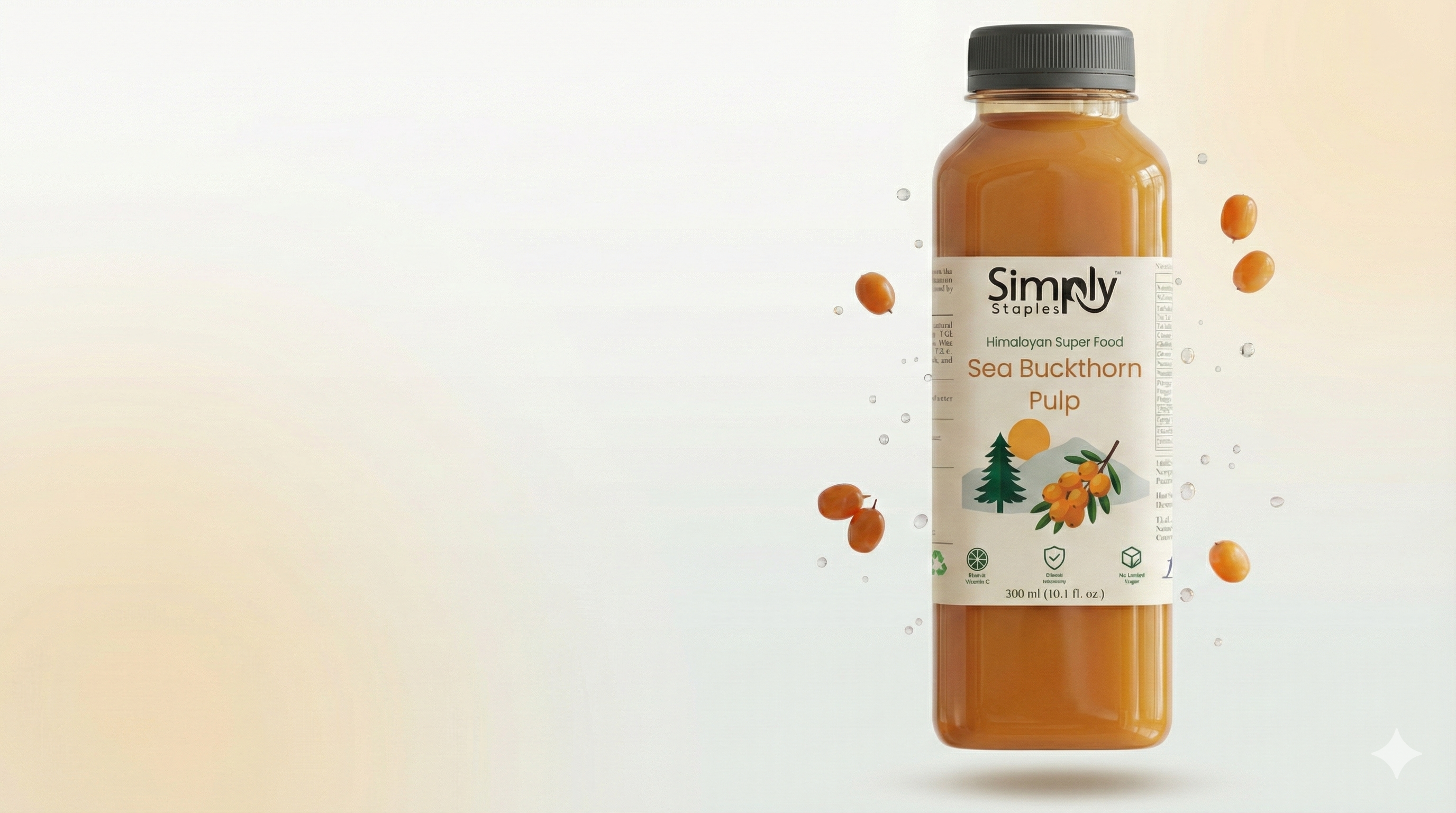 Simply Staples Sea Buckthorn Pulp 300 ml - Rich in Vitamin C, Omega 3,6,7 and 9 and Antioxidants)